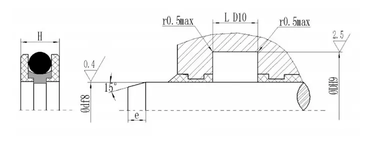 RC14 از یک حلقه آب بندی مثلثی PTFE و یک حلقه لاستیکی O شکل تشکیل شده است که برای آب بندی فشار یک طرفه هیدرولیک و پنوماتیک مناسب است. حلقه O نیروی شعاعی را فراهم می کند و سایش حلقه آب بندی را جبران می کند. از آنجا که حلقه آب بندی طراحی لب نازک را اتخاذ می کند ، توانایی جبران خسارت پیگیری بهتر است ، بنابراین عملکرد آب بندی خوب است. شیار تقسیم (باز) باید برای قطر میله کمتر از 30 میلی متر استفاده شود. ویژگی ها: