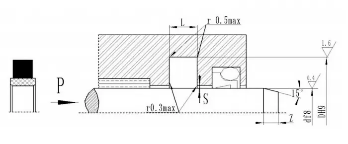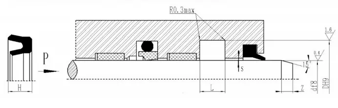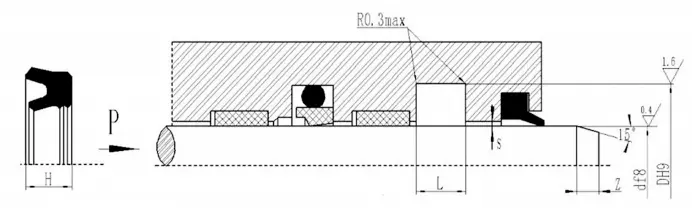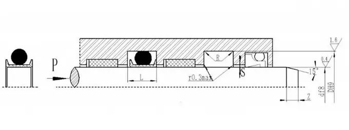 RC15 از مجموعه ای (بیش از 3) حلقه های آب بندی V شکل ، یک حلقه فشار و یک حلقه پشتیبانی تشکیل شده است و برای آب بندی فشار یک طرفه حرکت متقابل هیدرولیک مناسب است. گریس سازگار با مواد آب بندی باید در حین نصب اعمال شود. نمی توان آن را در یک شیار انتگرال (بسته) نصب کرد. ویژگی ها: